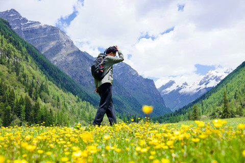 每年夏天的长穿毕是封神的存在,鲜花盛开,牛羊成群,漫天星空早上从成都出发,预计11点左右到达四姑娘山镇,吃午餐(如遇堵车或购票耽误则调整为路餐),中午12:00左右进山,下午4-5点左右到达木骡子,扎营享用晚餐。